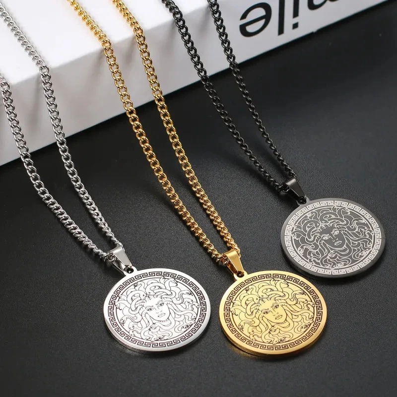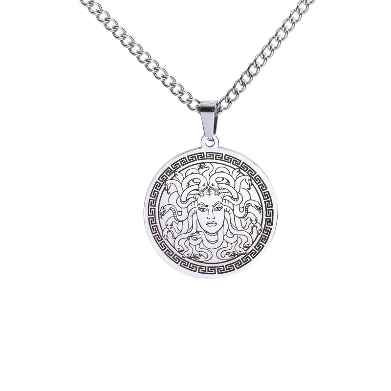 Κολιέ αντρικό ατσάλι με σύμβολο μέδουσα-NE025