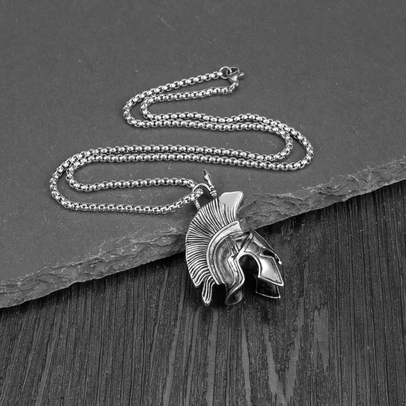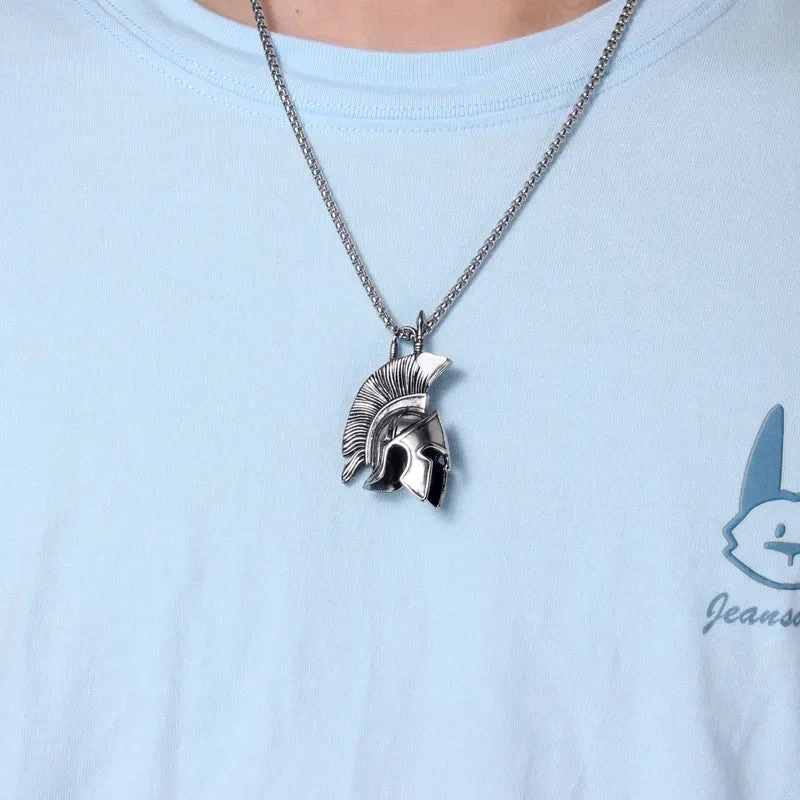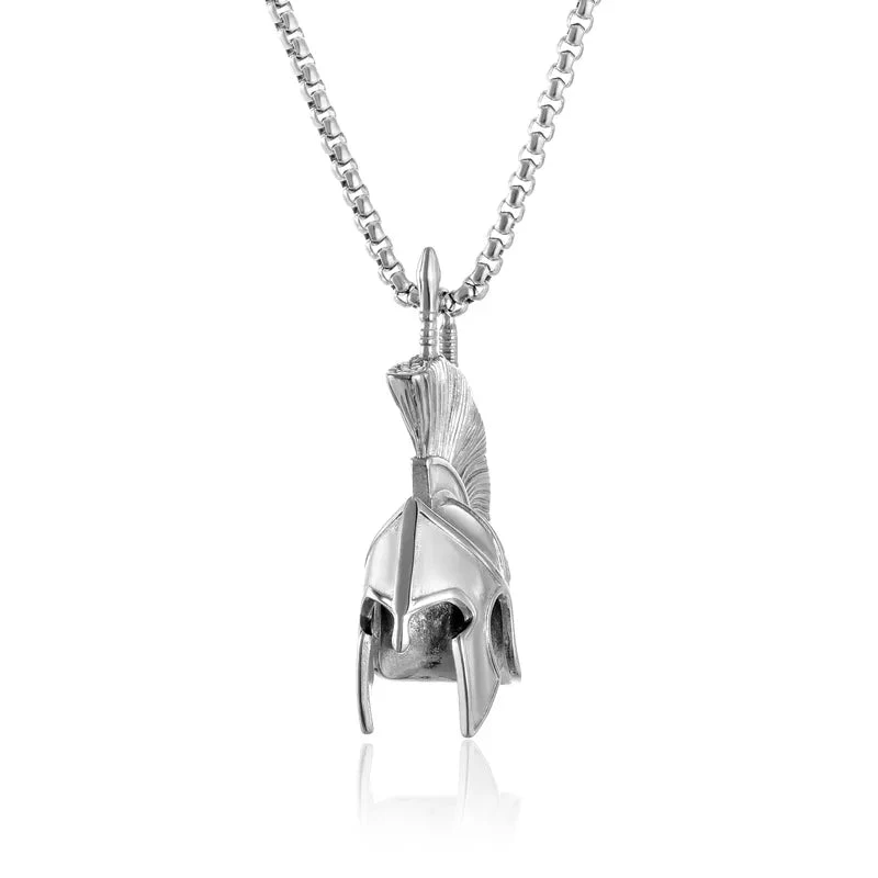 Κολιέ αντρικό κράνος ασημί ατσάλι-NE049