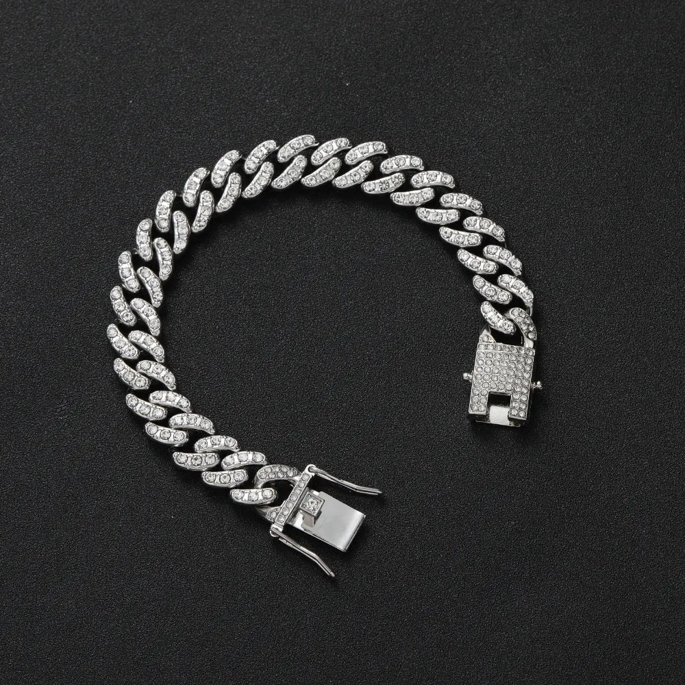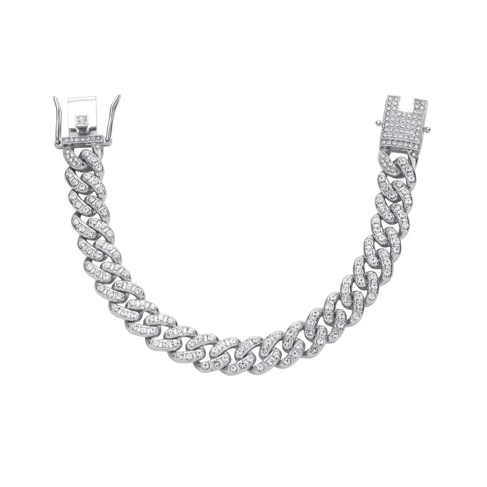Βραχιόλι αντρικό ασημί φαρδιά αλυσίδα με κρύσταλλα-BR247