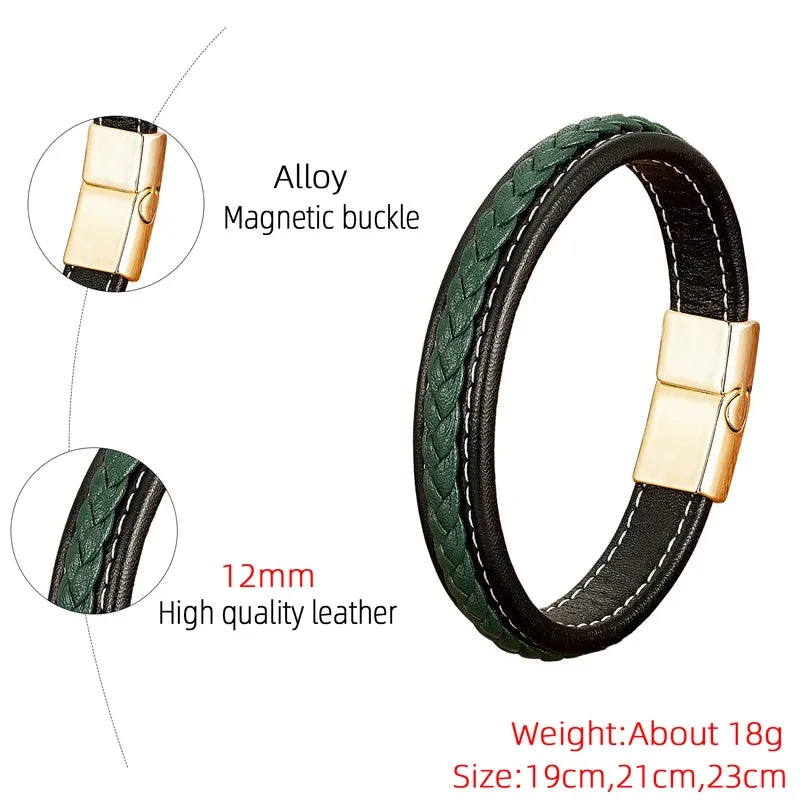 Βραχιόλι αντρικό μαύρο και πράσινο με μαγνητικό κούμπωμα-BR143