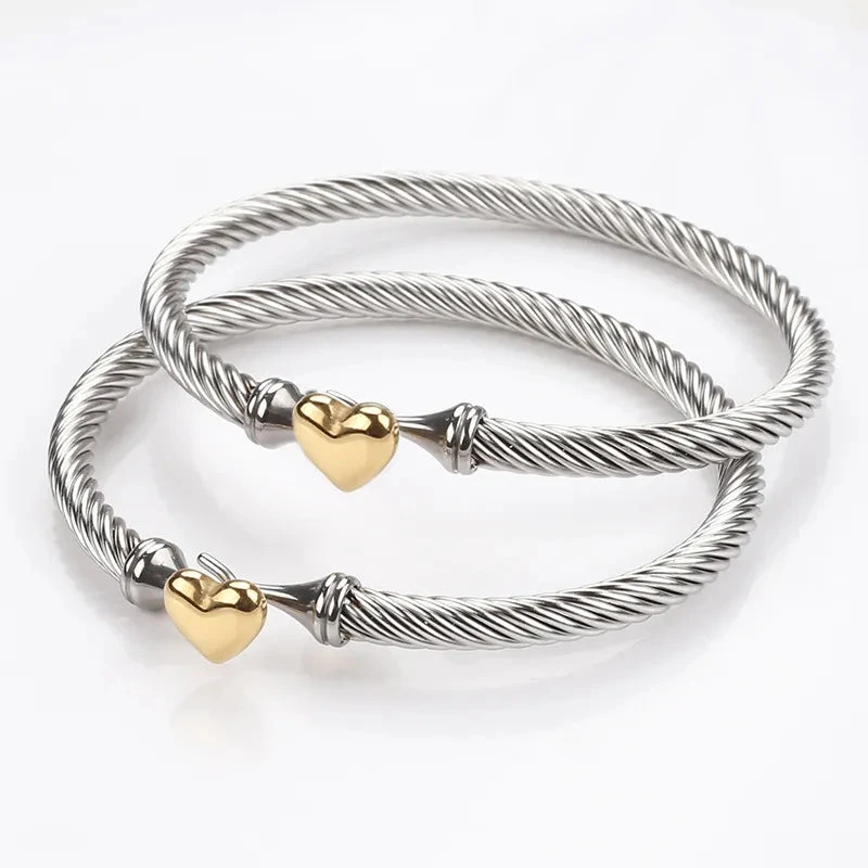 Βραχιόλι ασημί ατσάλι με χρυσή καρδιά-BR084