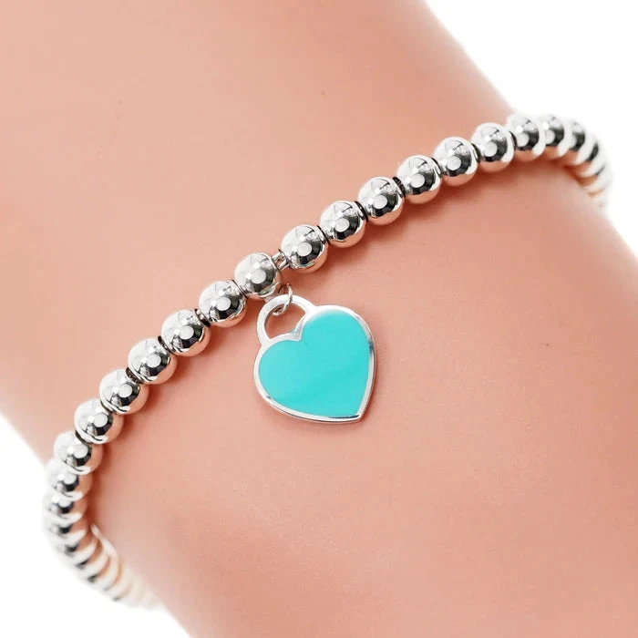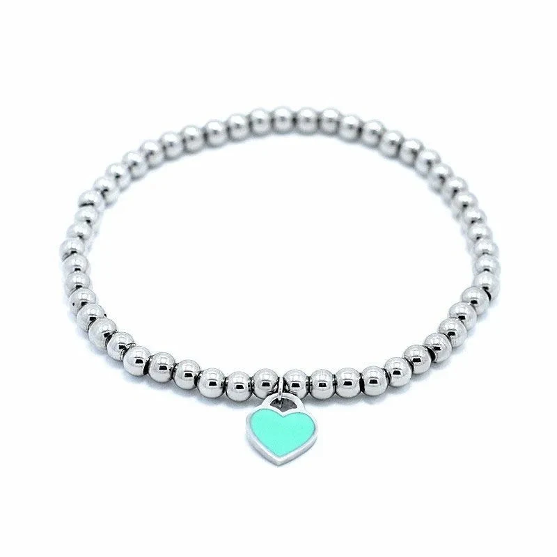 Βραχιόλι ατσάλι με γαλάζια καρδιά-BR004