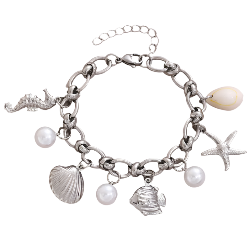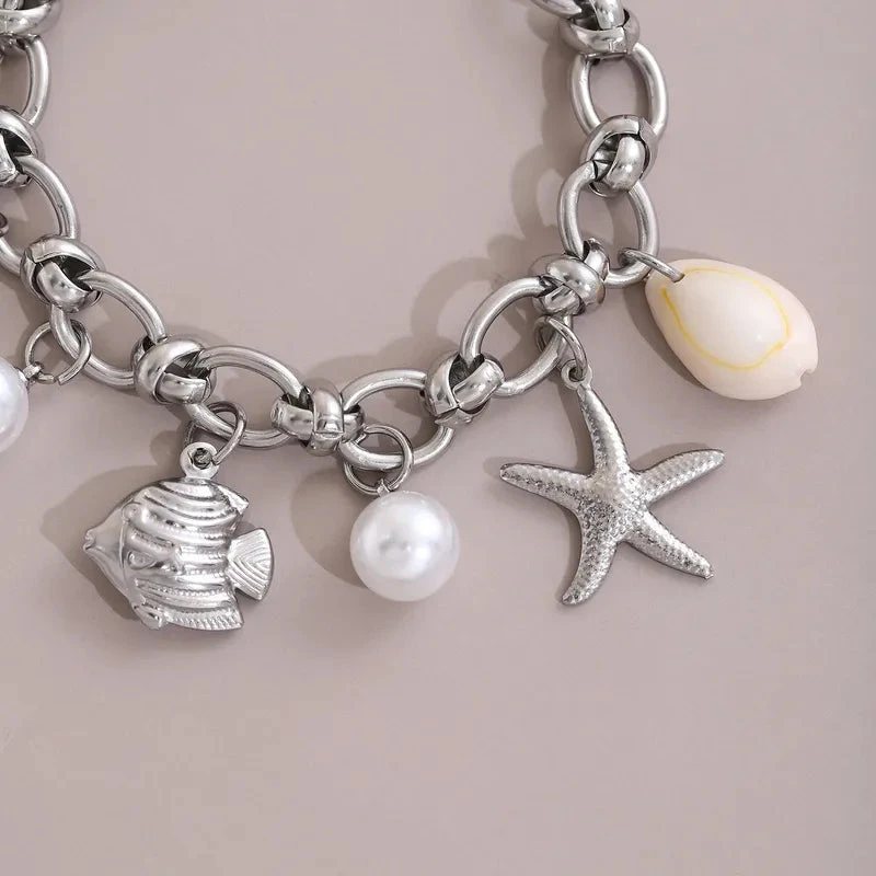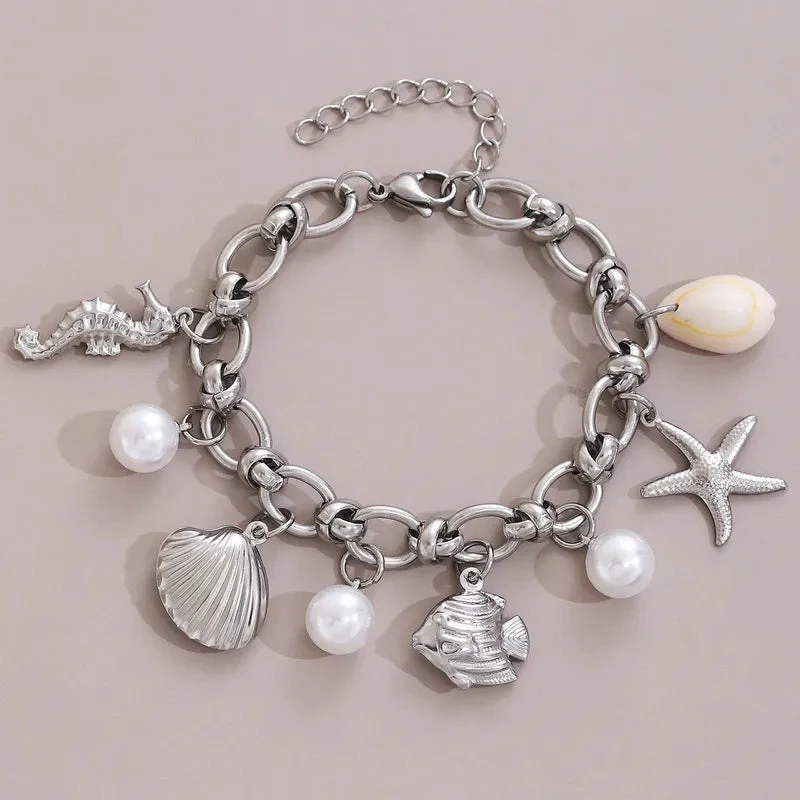 Βραχιόλι ατσάλι με πέρλες και καλοκαιρινά σύμβολα-BR109