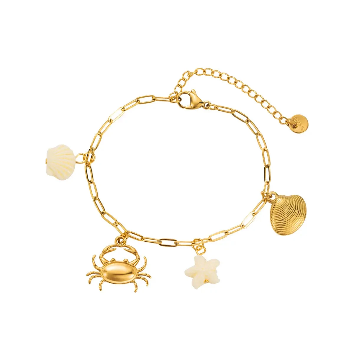 Βραχιόλι επιχρυσωμένο ατσάλι με καβουράκι και κοχύλια-BR287