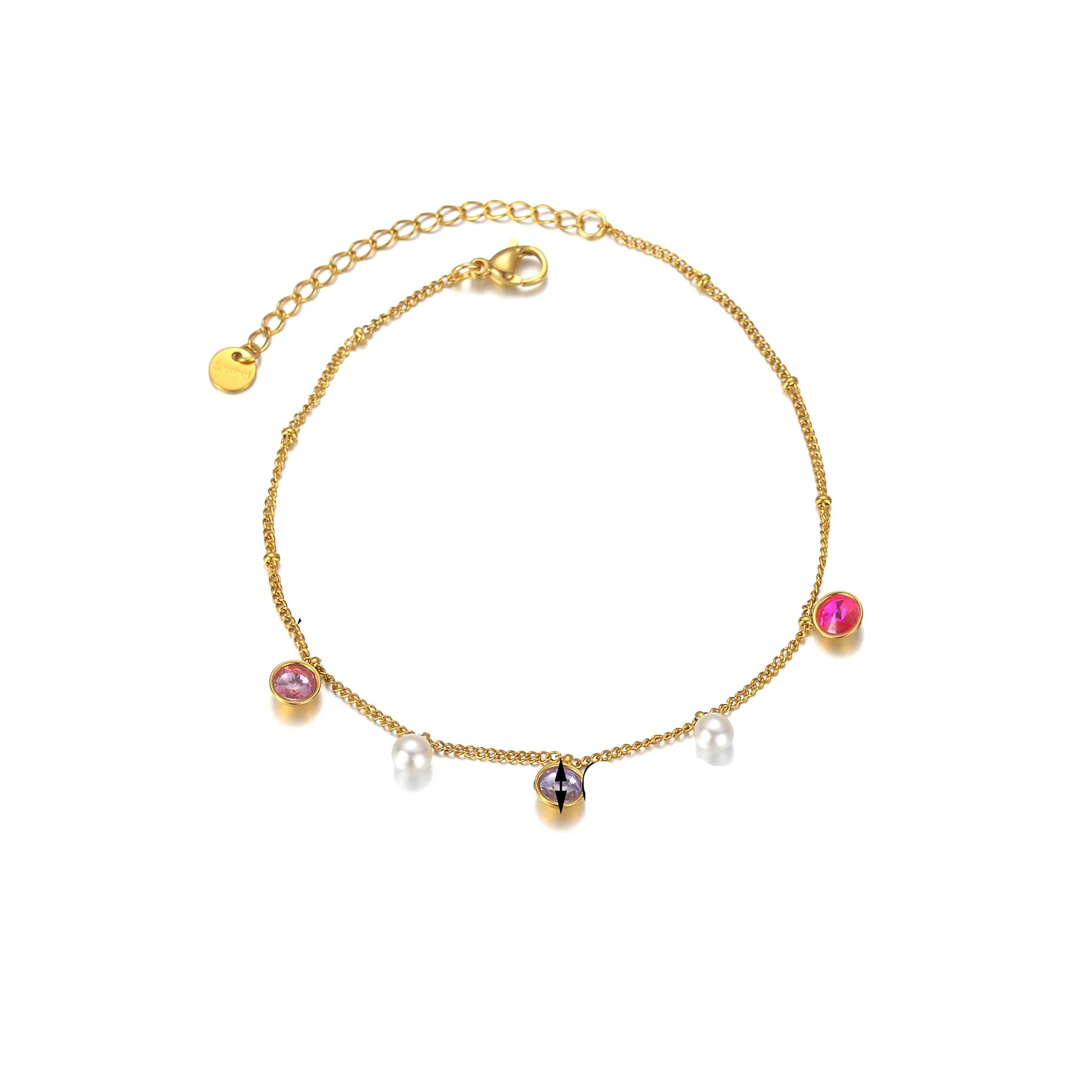 Βραχιόλι επιχρυσωμένο ατσάλι με μωβ και ροζ πέτρες-AN064