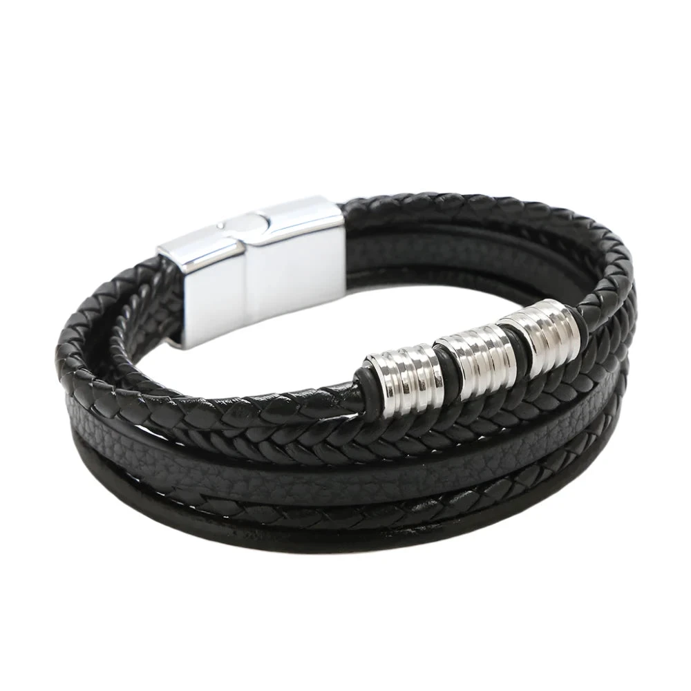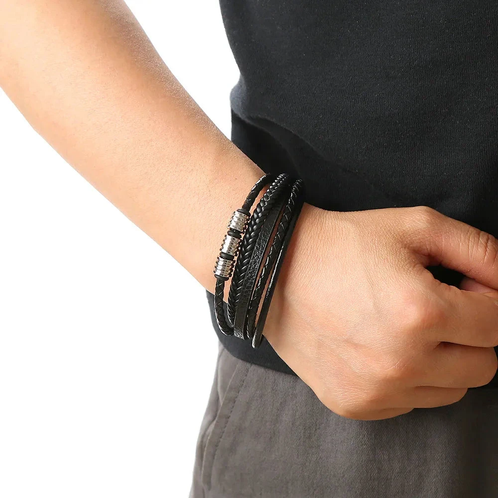 Βραχιόλι μαύρο αντρικό με πολλές σειρές-BR225