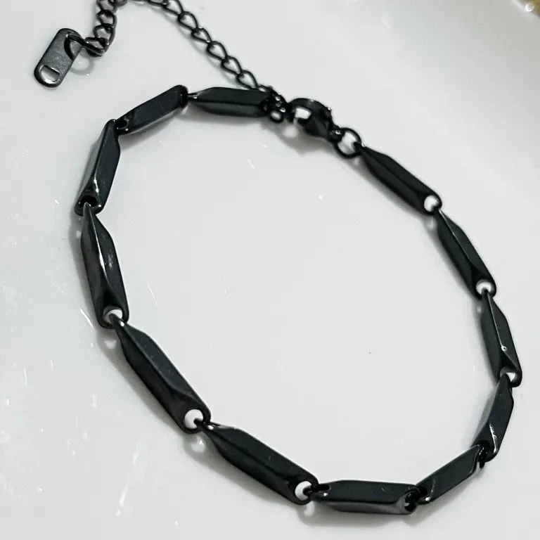 Βραχιόλι μαύρο ατσάλι ρομβικό σχέδιο-BR230
