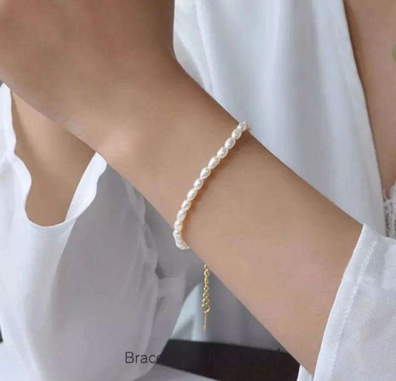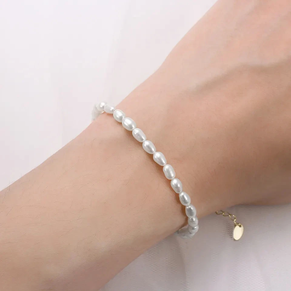 Βραχιόλι με ατσάλινή αλυσίδα και πέρλες – BR069