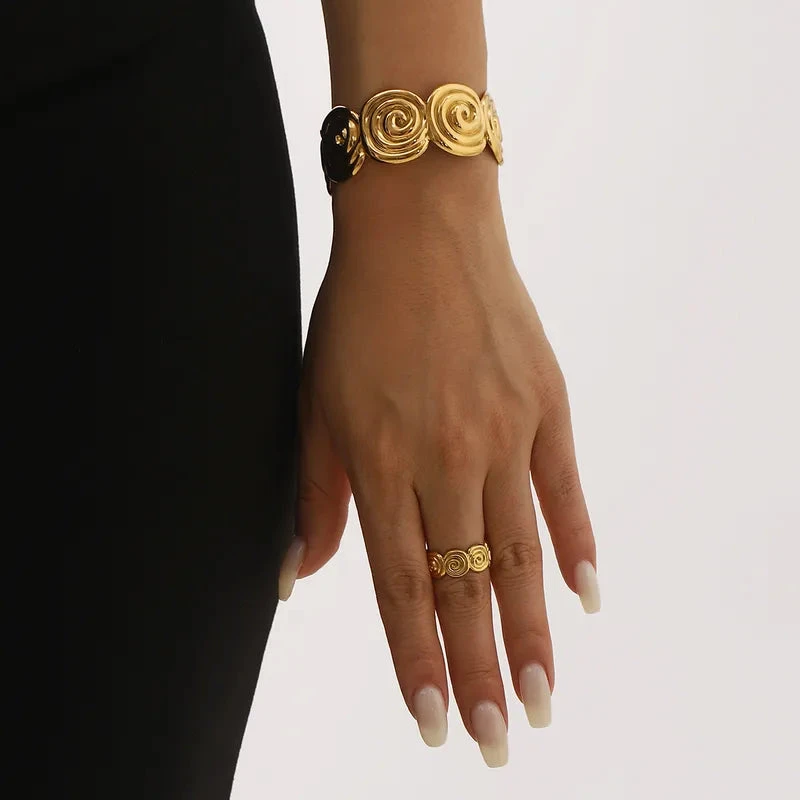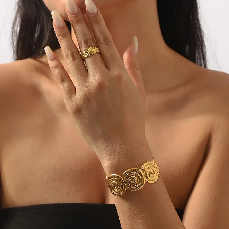 Βραχιόλι χρυσό ατσάλι γυαλιστερό σπιράλ-BR235