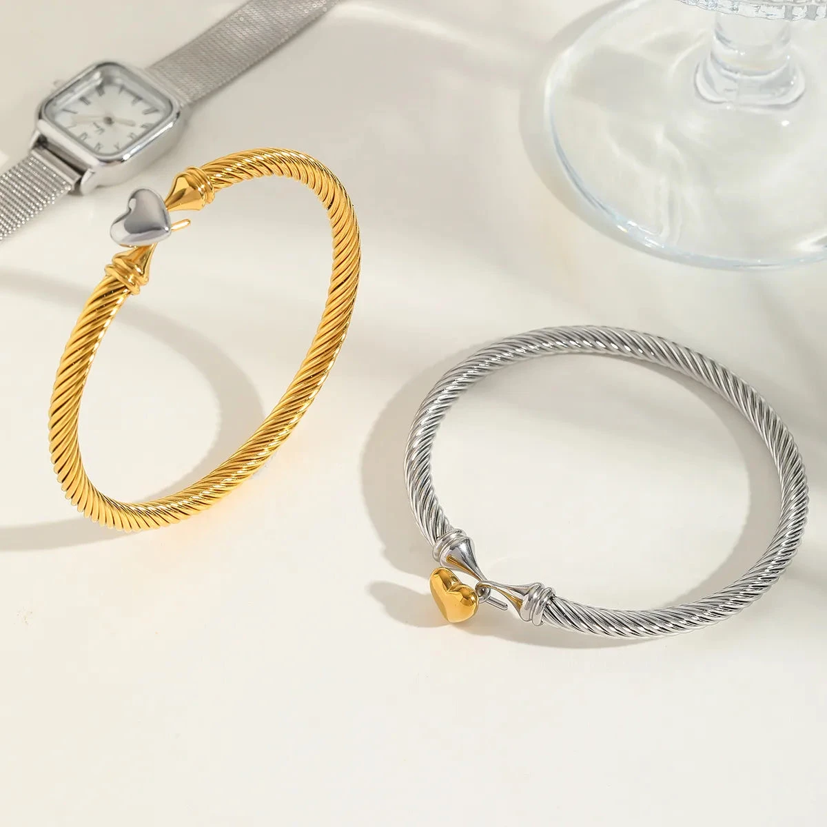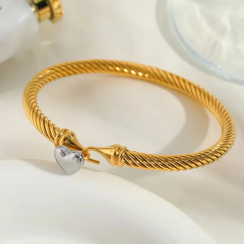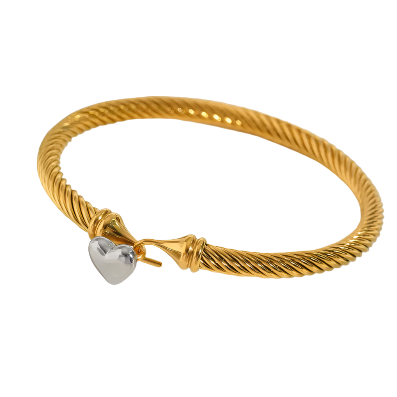 Βραχιόλι χρυσό ατσάλι με ασημί καρδιά-BR021