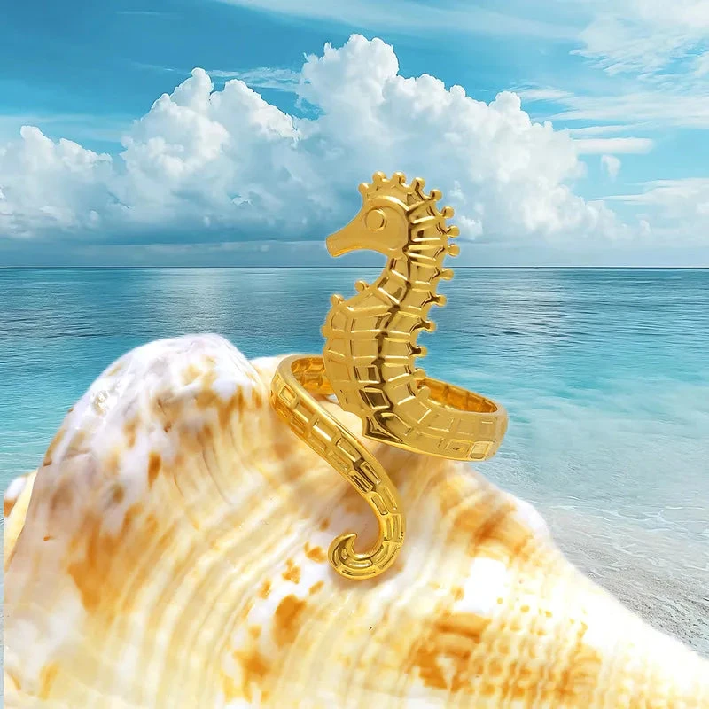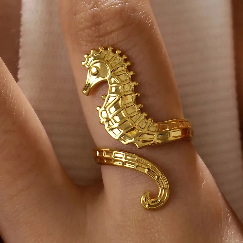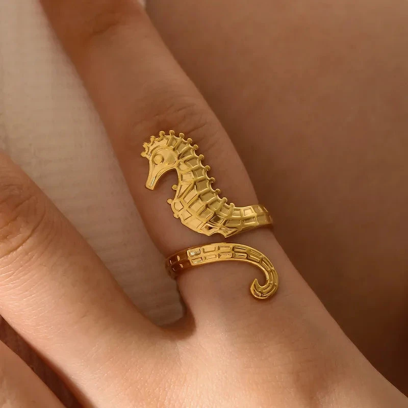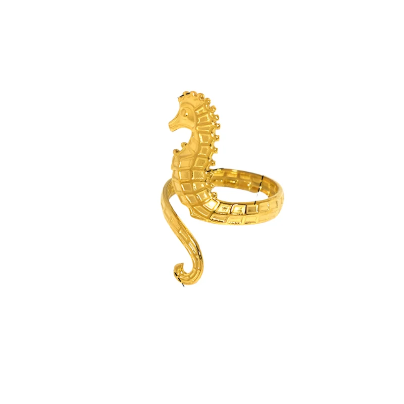 Δαχτυλίδι επιχρυσωμένο ατσάλι ιππόκαμπος-R195