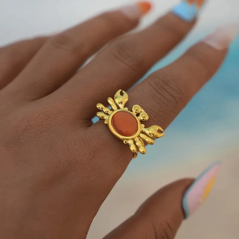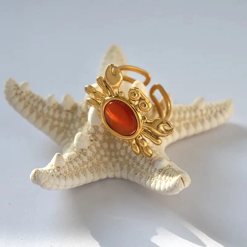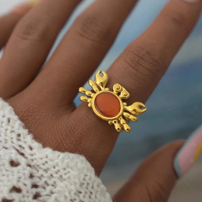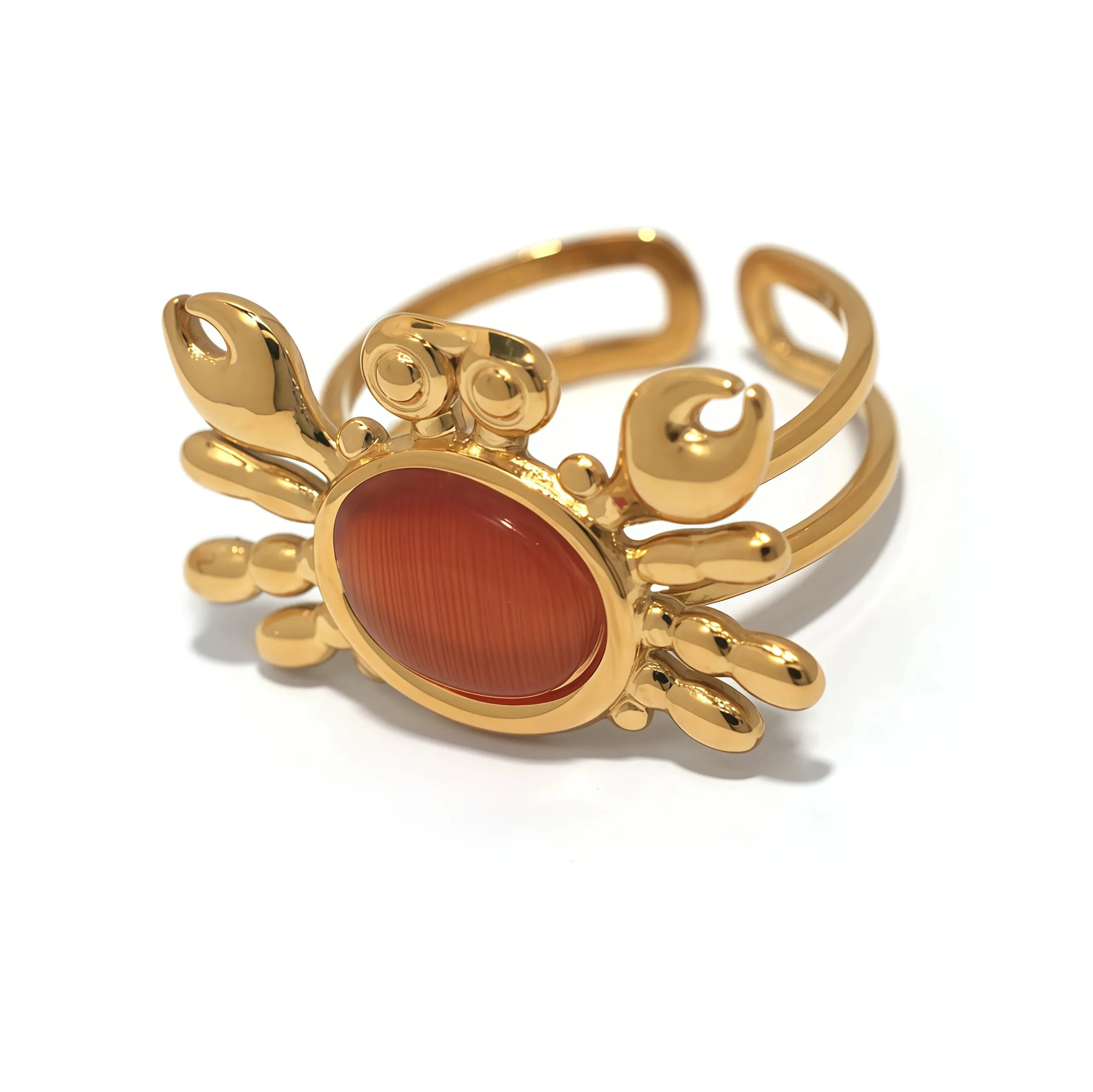 Δαχτυλίδι επιχρυσωμένο ατσάλι καβούρι με κόκκινη πέτρα-R076