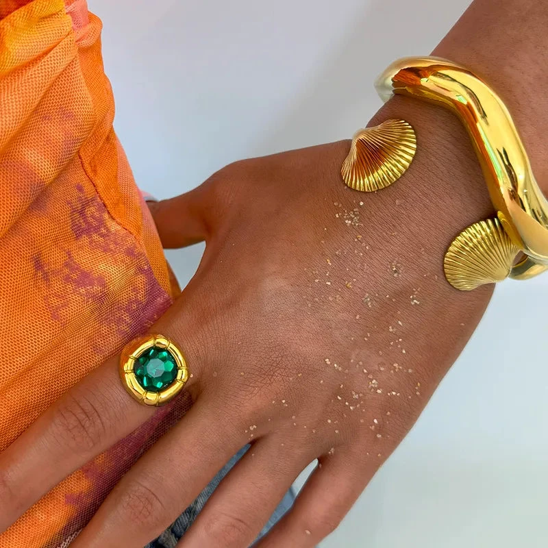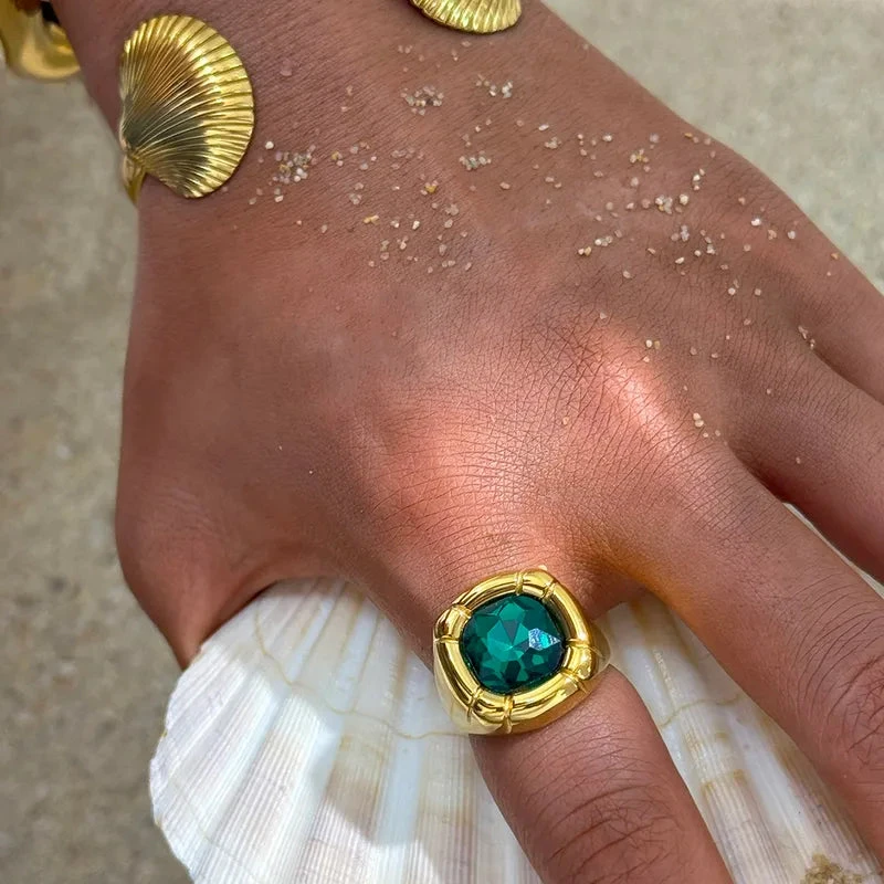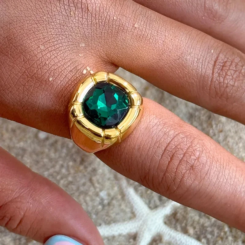 Δαχτυλίδι επιχρυσωμένο ατσάλι με μεγάλη πράσινη πέτρα-R219