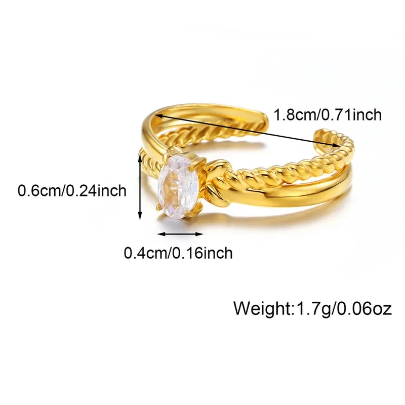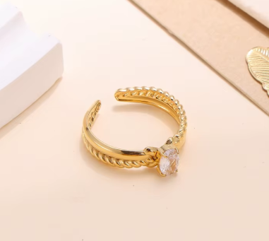 Δαχτυλίδι επιχρυσωμένο ατσάλι με πέτρα και πλεκτά στοιχεία-R140