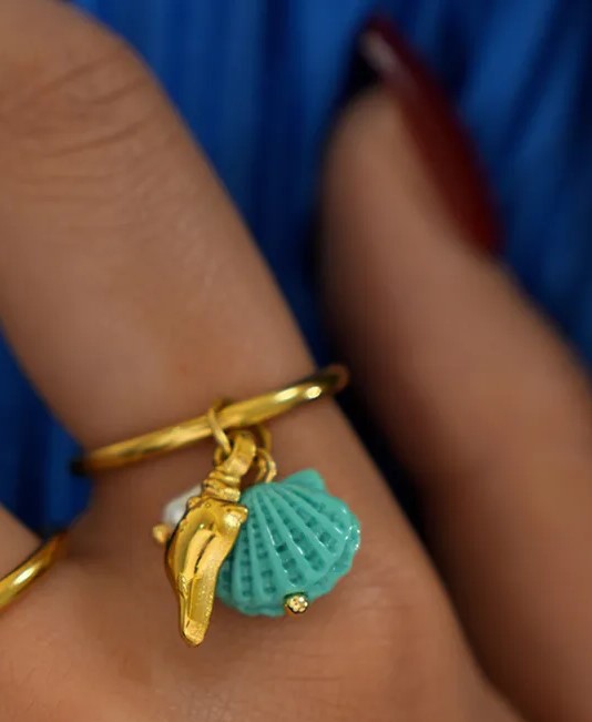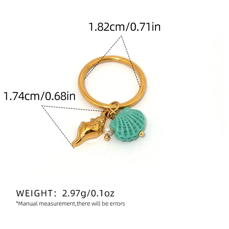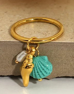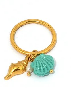 Δαχτυλίδι επιχρυσωμένο ατσάλι με τιρκουάζ κοχύλι και πέρλα-R057