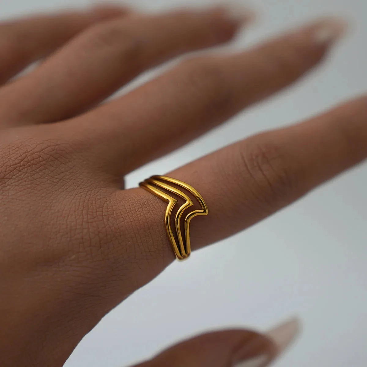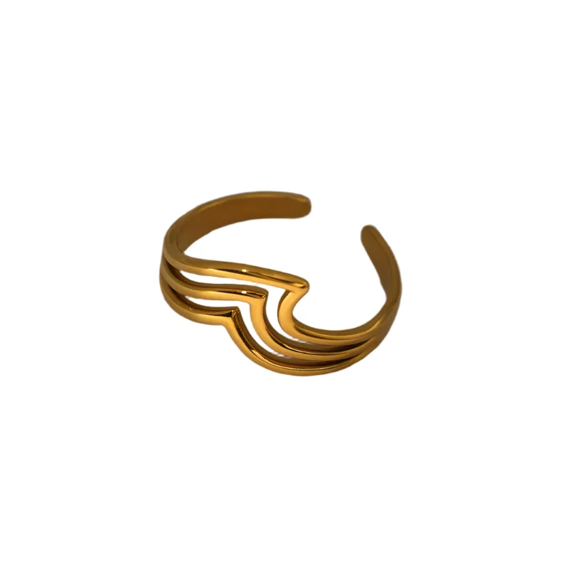 Δαχτυλίδι επιχρυσωμένο ατσάλι τριπλό κύμα-R021