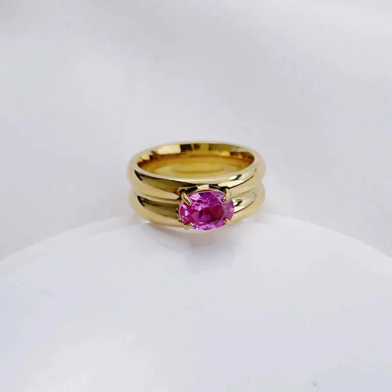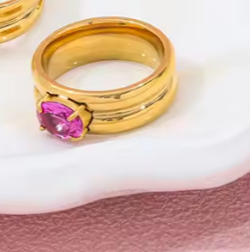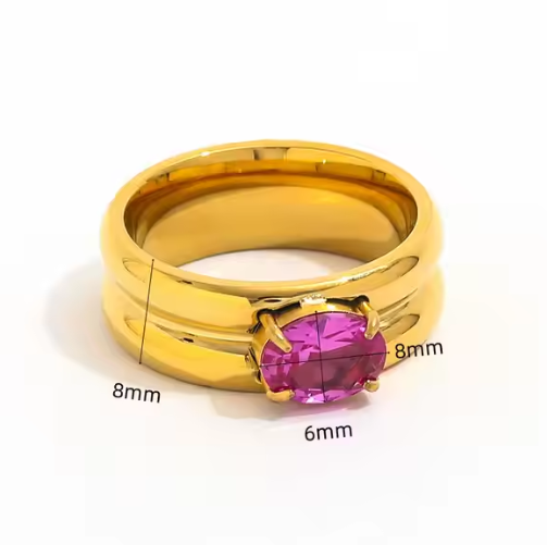 Δαχτυλίδι χρυσό ατσάλι με φουξ πέτρα-R155