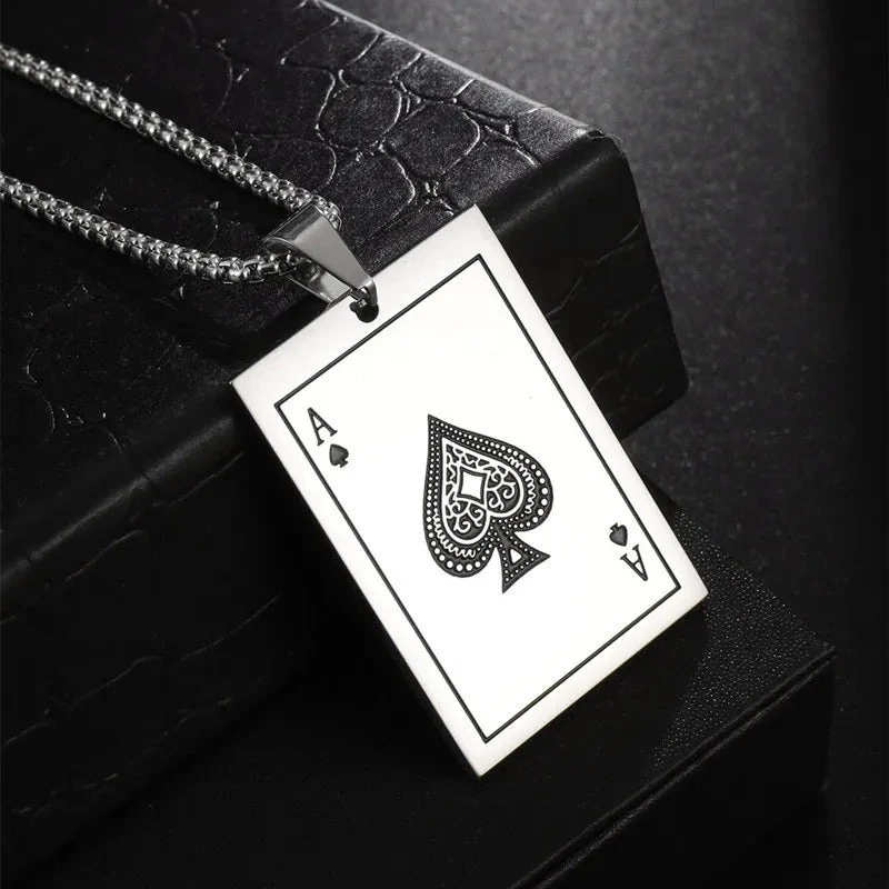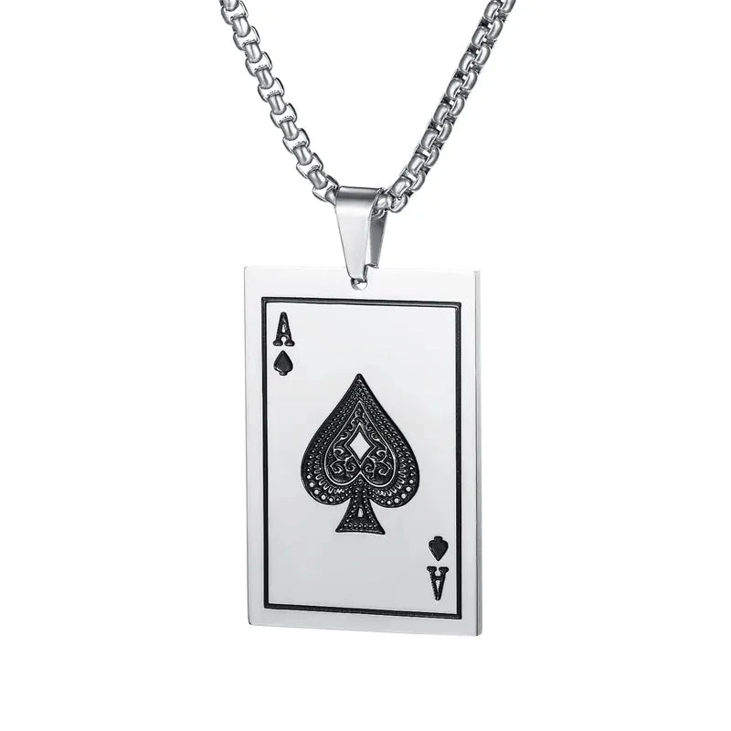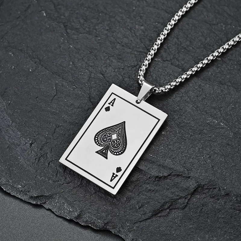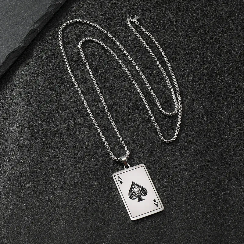 Κολιέ αντρικό ασημί ατσάλι φύλλο τράπουλας-NE439