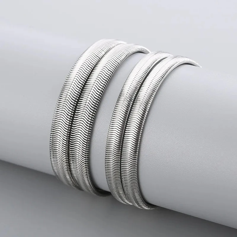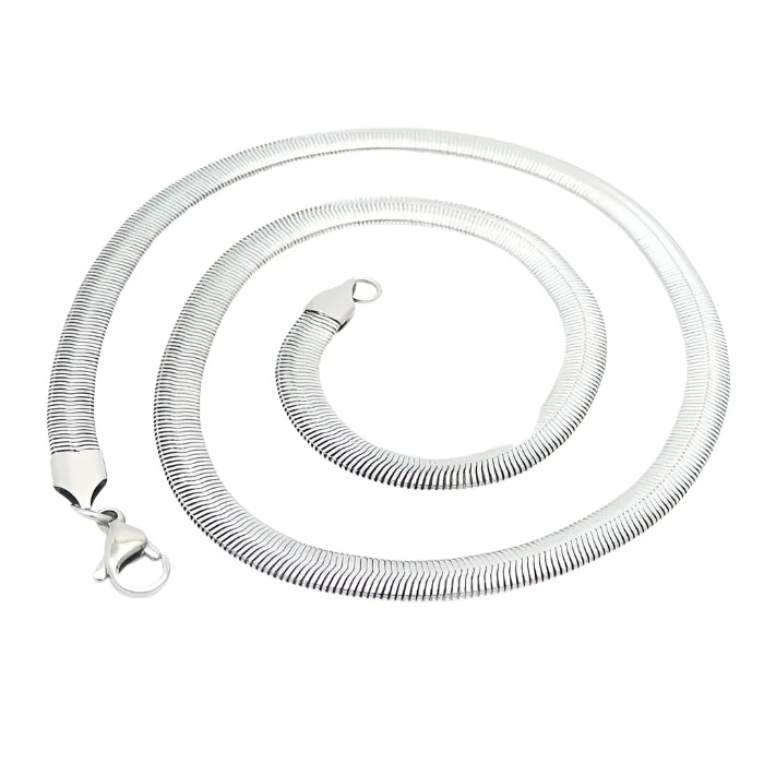 Κολιέ ασημί ατσάλι πλατιά αλυσίδα -NE123