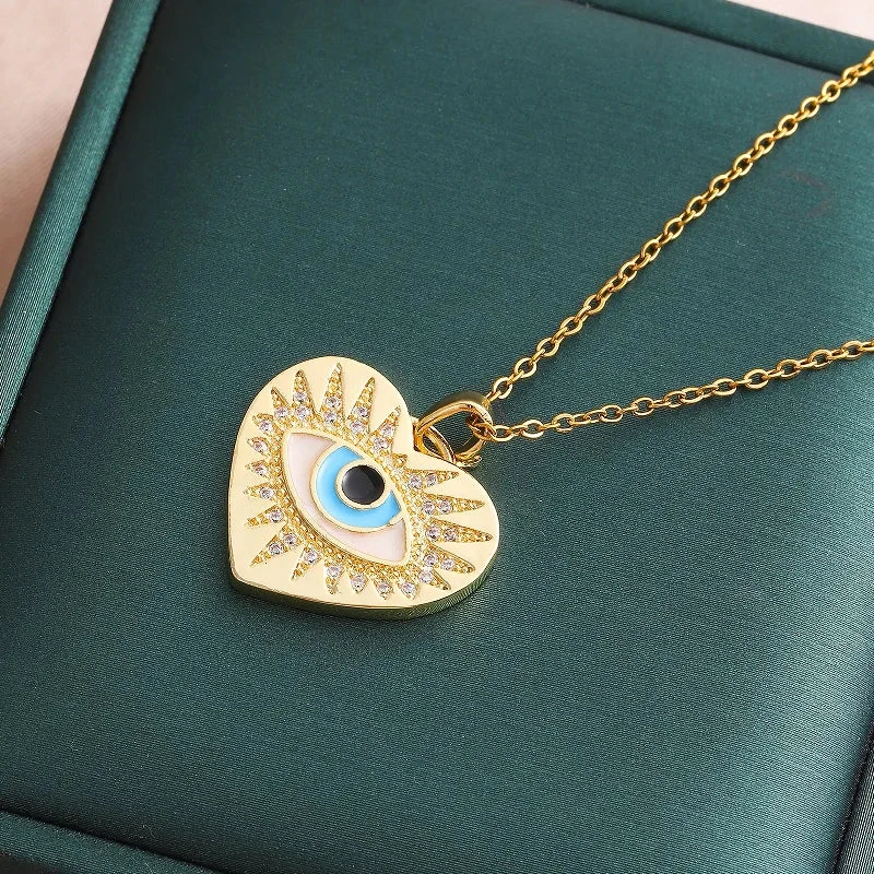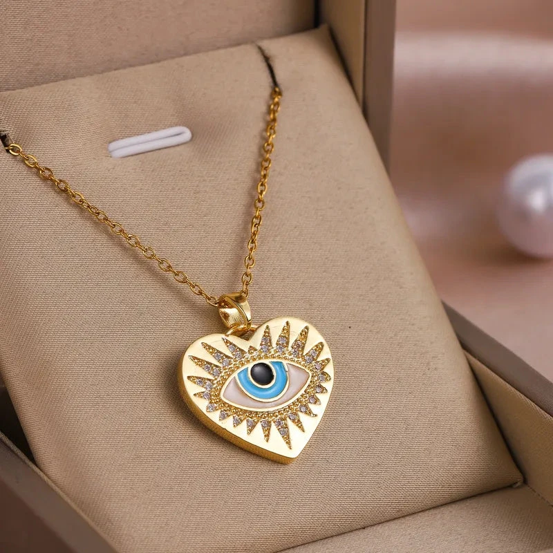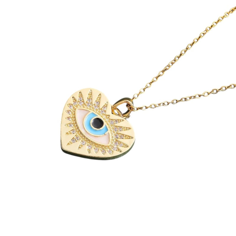 Κολιέ ατσάλινο με καρδιά και μάτι – NE419