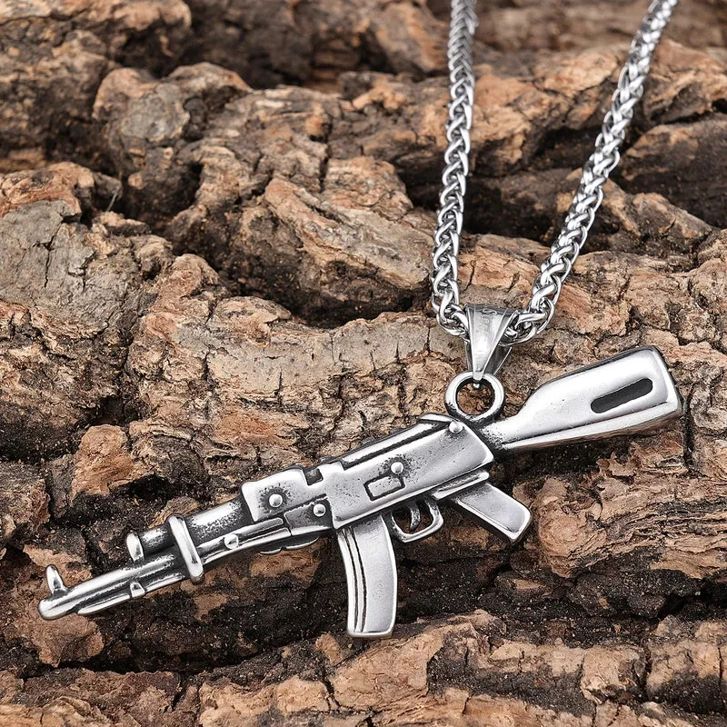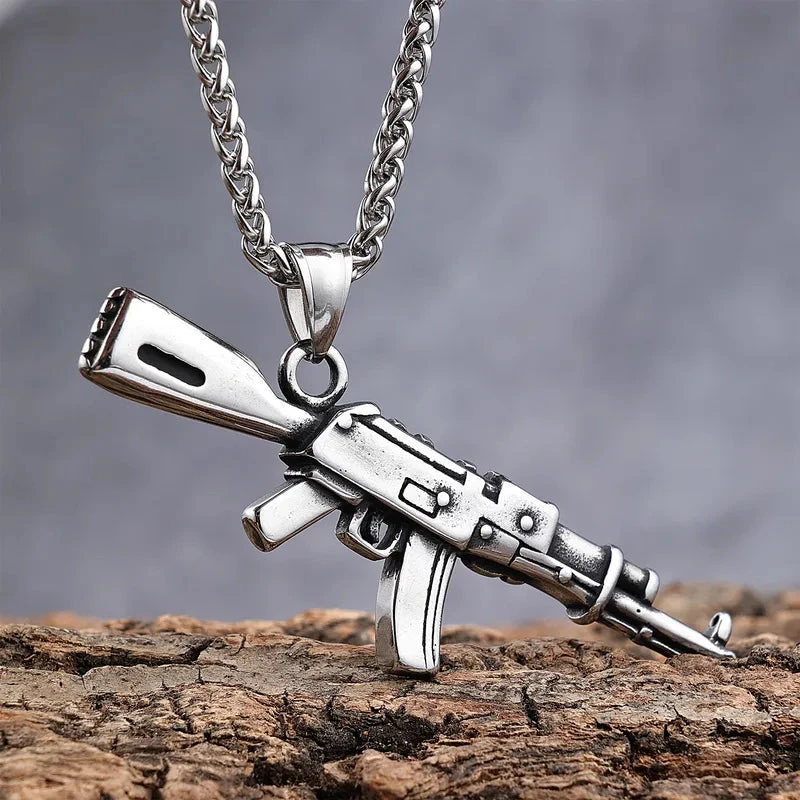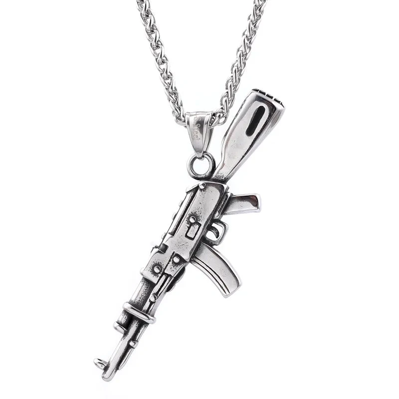 Κολιέ ατσάλι με μενταγιόν όπλο-NE054