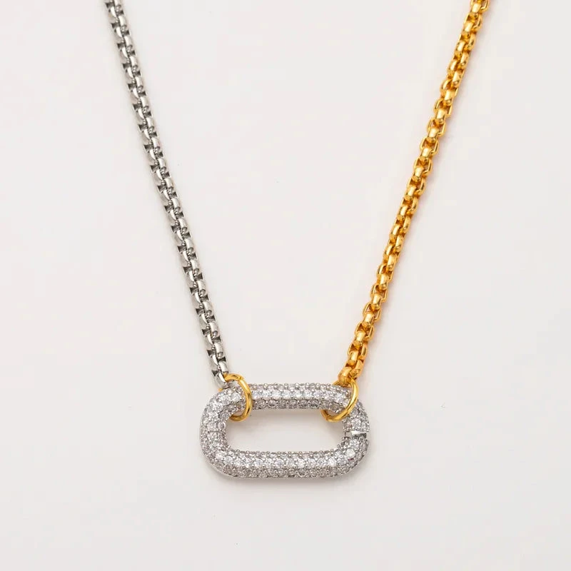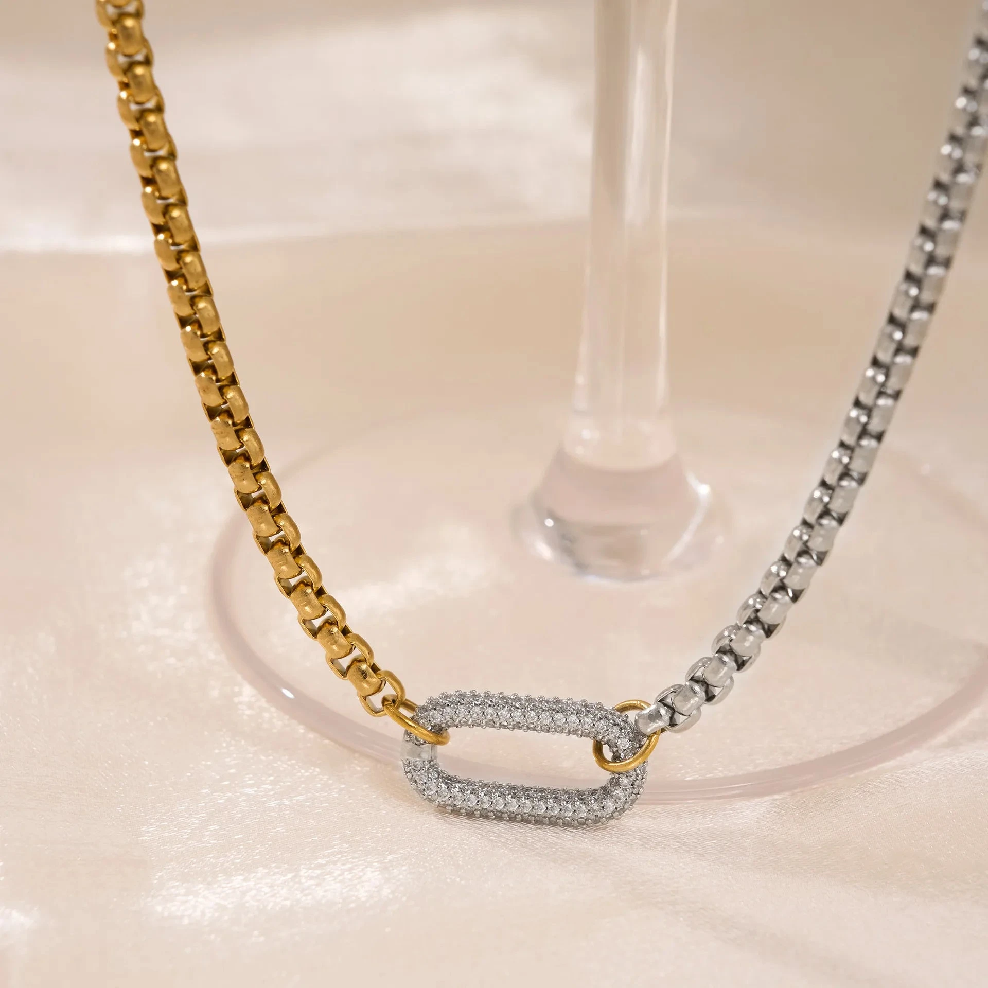 Κολιέ ατσάλι χρυσό και ασημί με zircon οβαλ-NE401