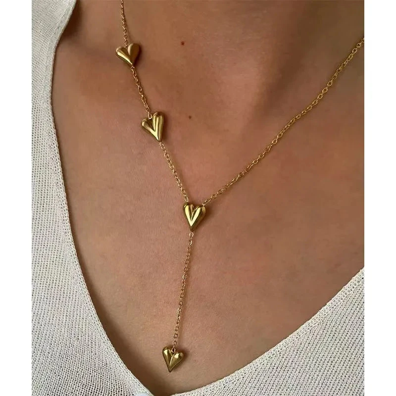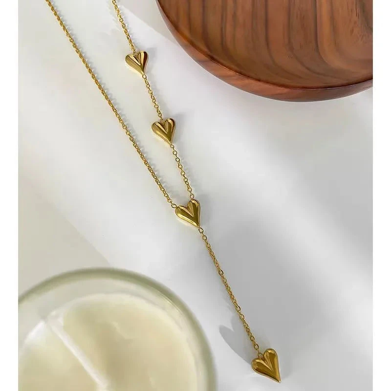 Κολιέ επιχρυσωμένο ατσάλι μακρύ με καρδιές στη μια πλευρά-NE062