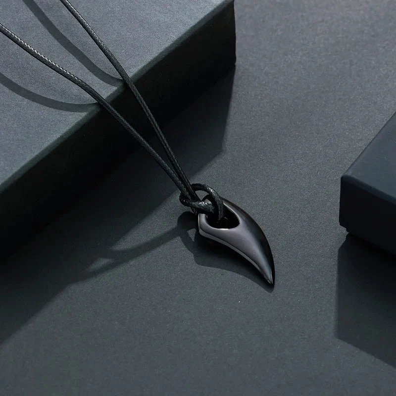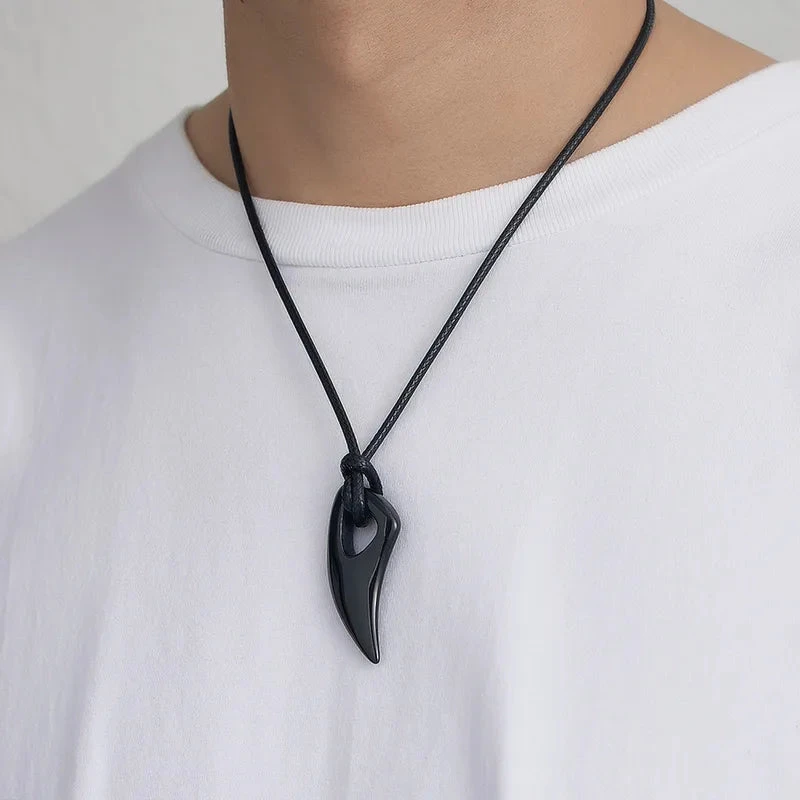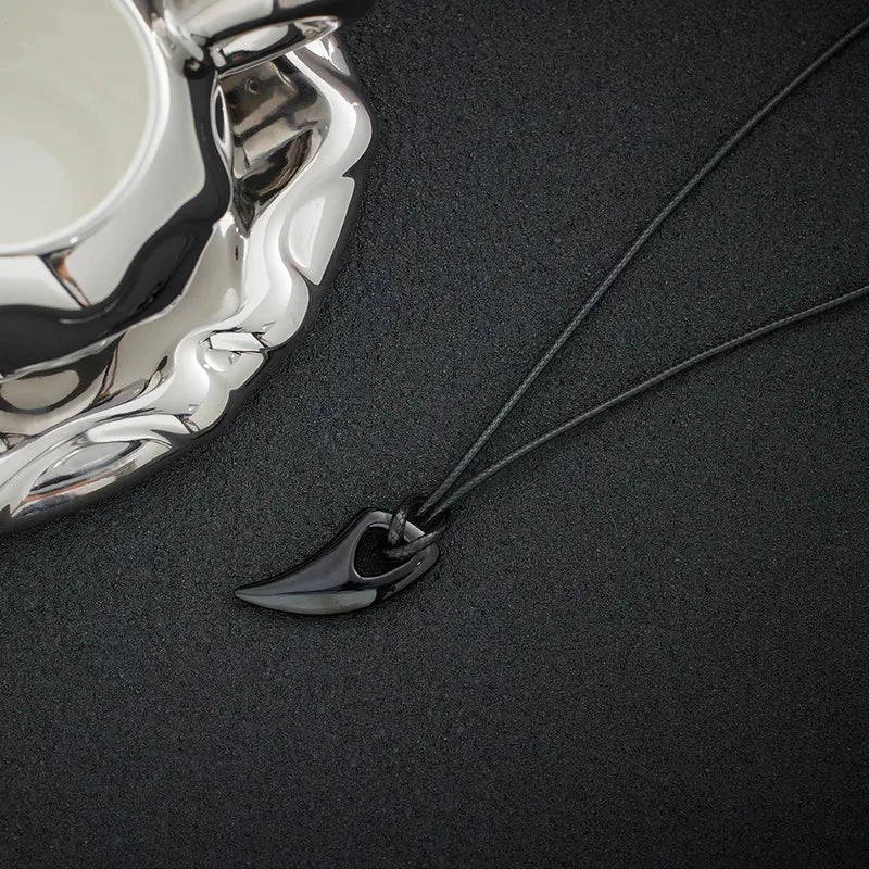 Κολιέ με δερμάτινο κορδόνι και ατσάλινο μαύρο κρεμαστό δόντι – NE349