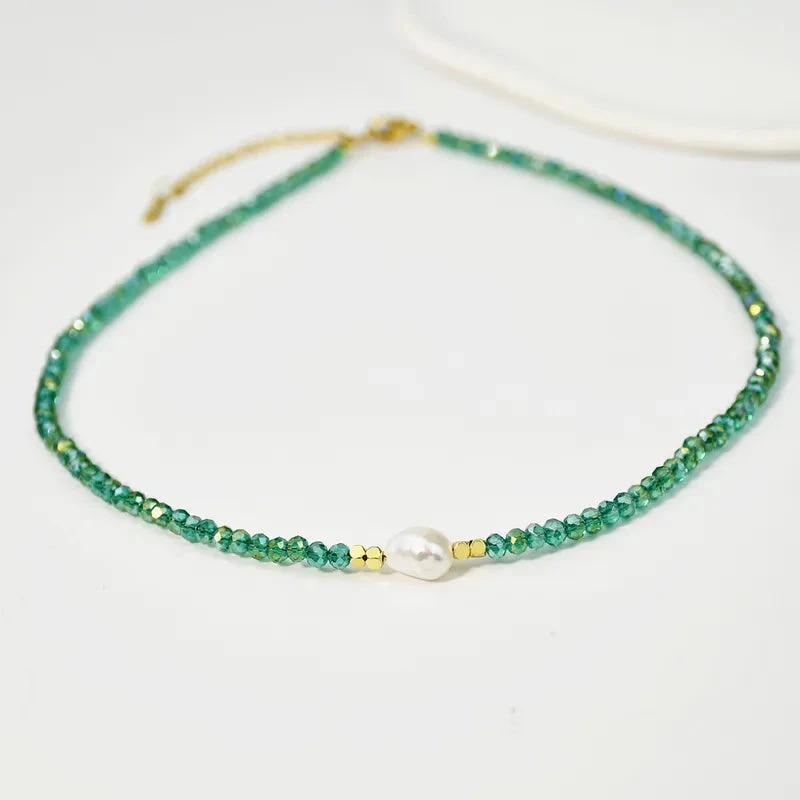 Κολιέ με τεχνητά κρύσταλλα και πέρλα – NE403