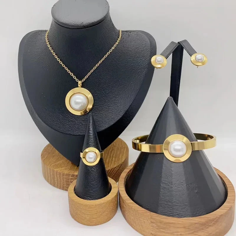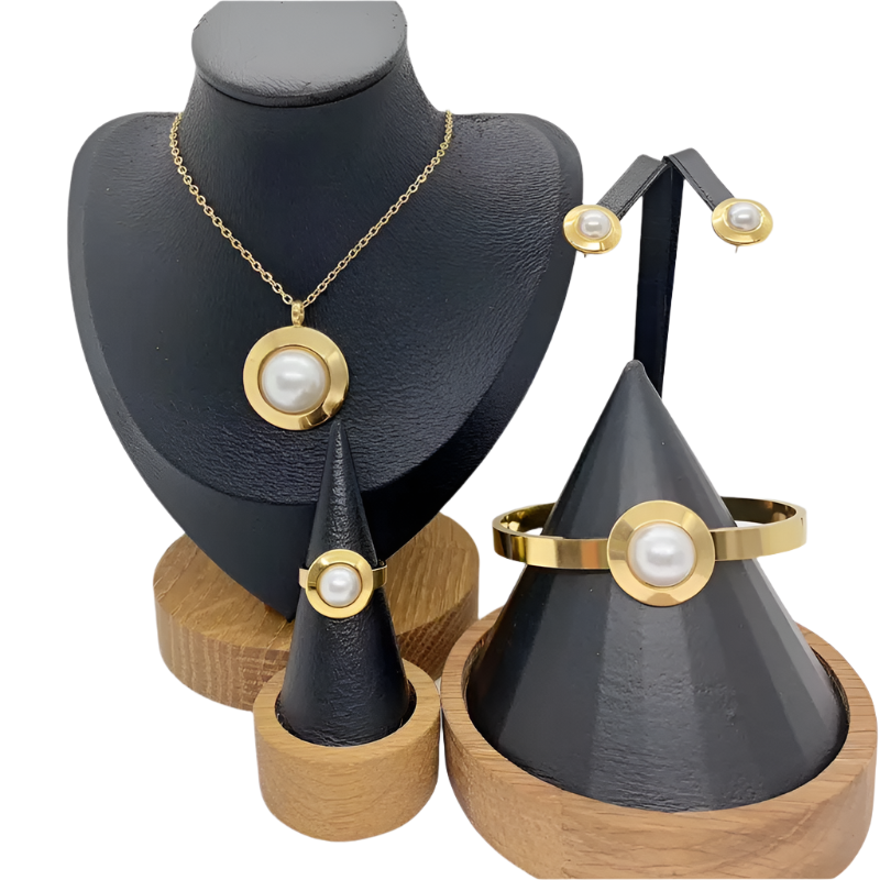 Σετ κοσμημάτων χρυσό ατσάλι με τεχνητή πέρλα-SET014