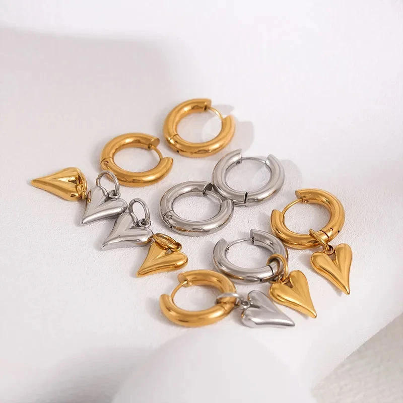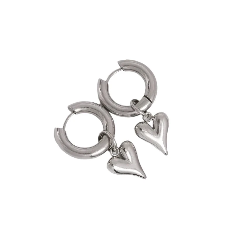 Σκουλαρίκια ατσάλι ασημί μυτερή καρδιά-EA579