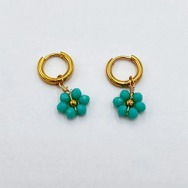 Σκουλαρίκια ατσάλι λουλουδάκια κρίκοι σε διάφορα χρώματα-EA541