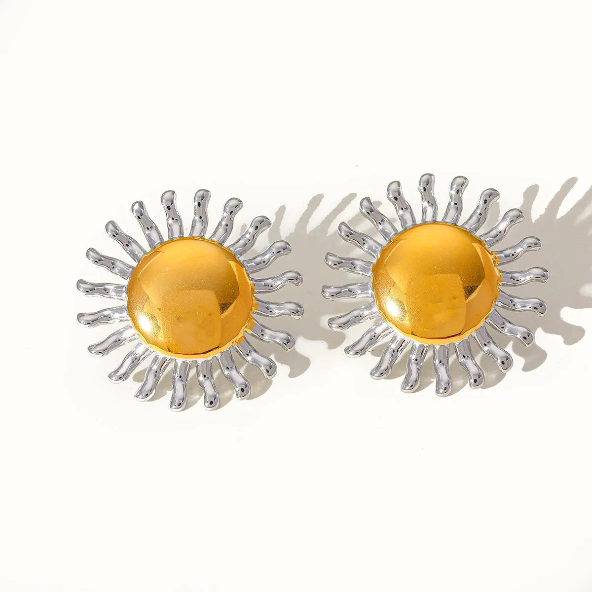 Σκουλαρίκια επιχρυσωμένο ατσάλι ήλιος με ασημί ακτίνες-EA275
