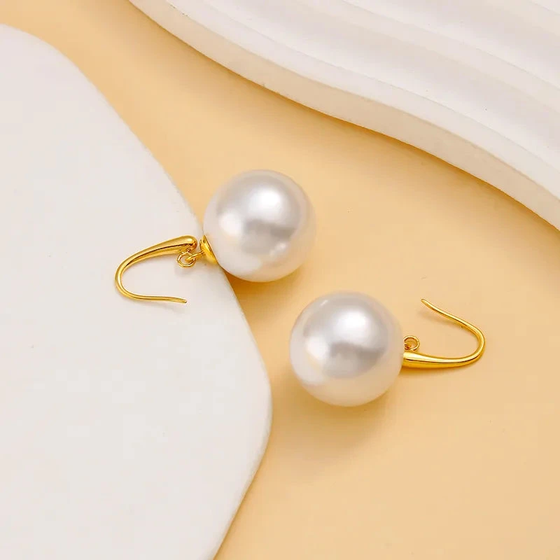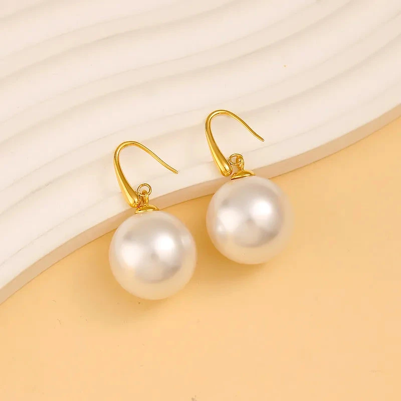Σκουλαρίκια επιχρυσωμένο ατσάλι αγκίστρι με μεγάλη πέρλα-EA535