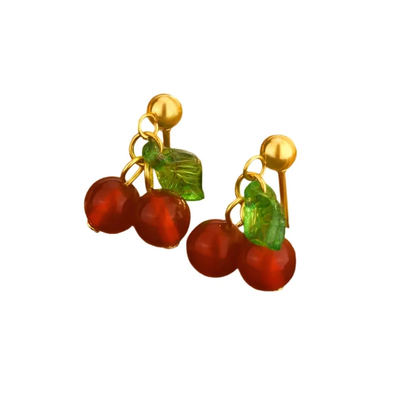 Σκουλαρίκια επιχρυσωμένο ατσάλι κεράσι-EA443