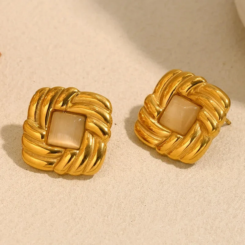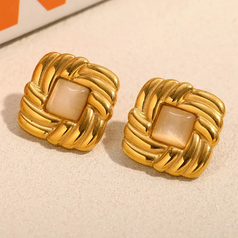 Σκουλαρίκια επιχρυσωμένο ατσάλι τετράγωνα με ροζ πέτρα-EA381
