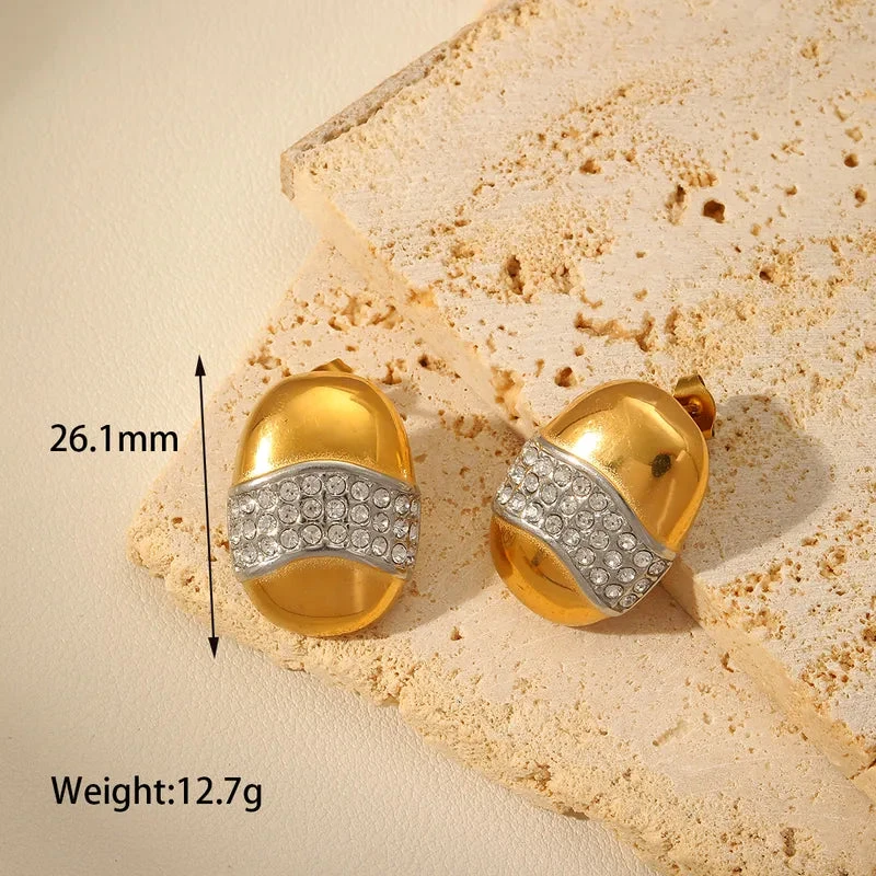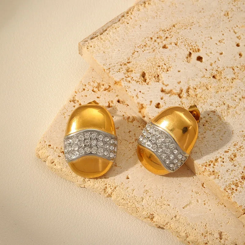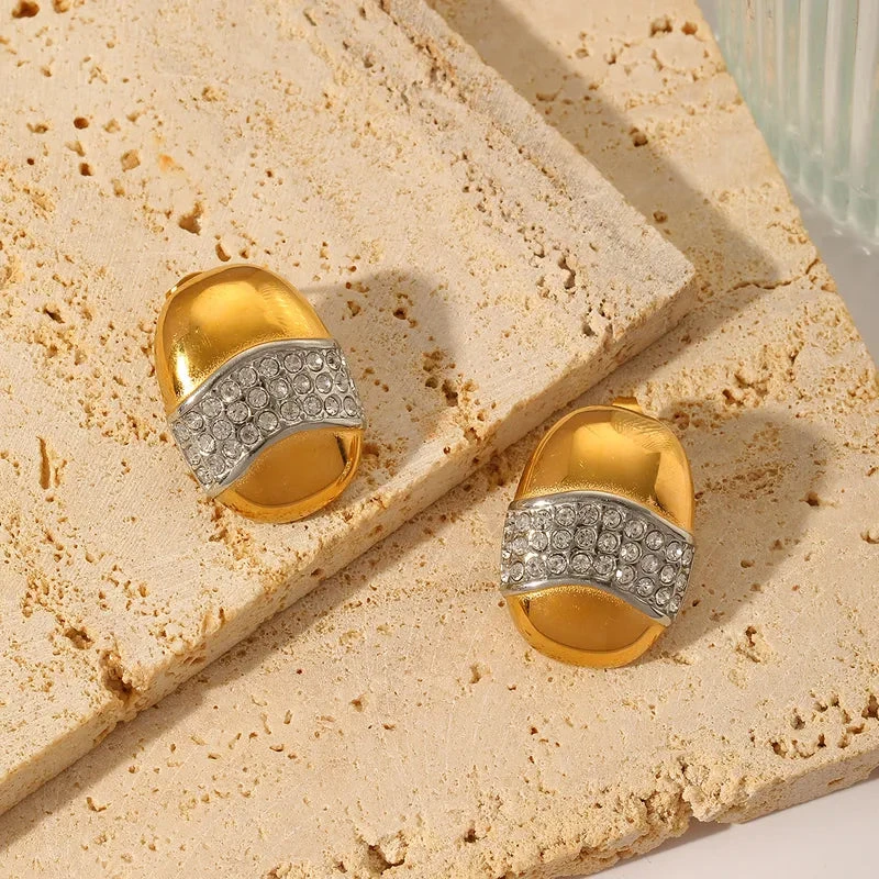 Σκουλαρίκια οβάλ χρυσά με ασημί πέτρες-EA064