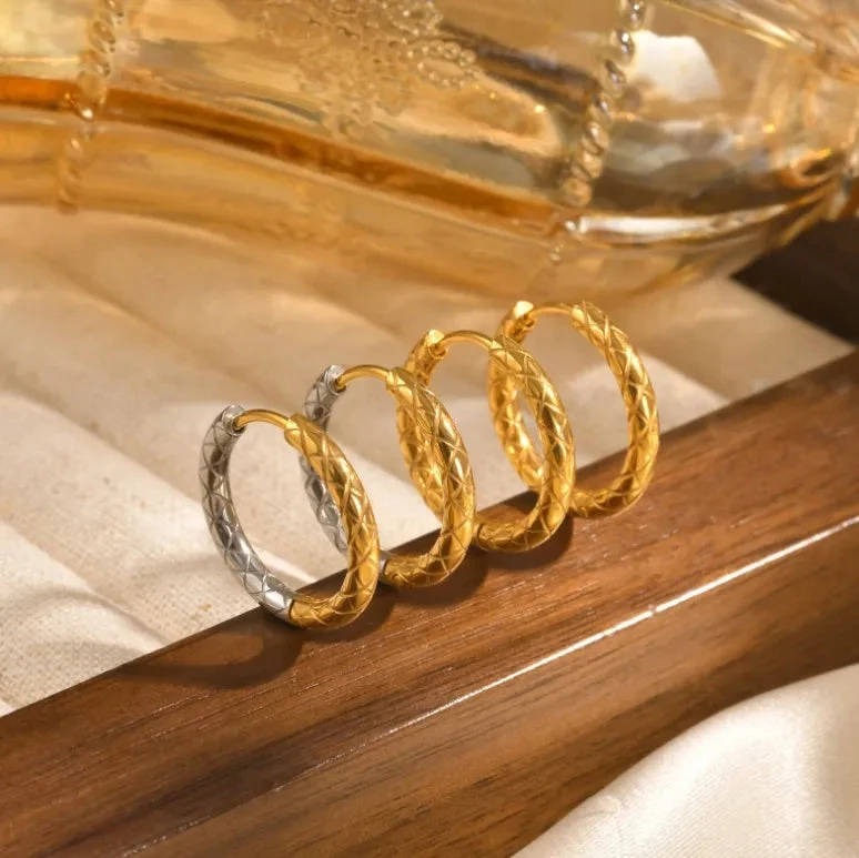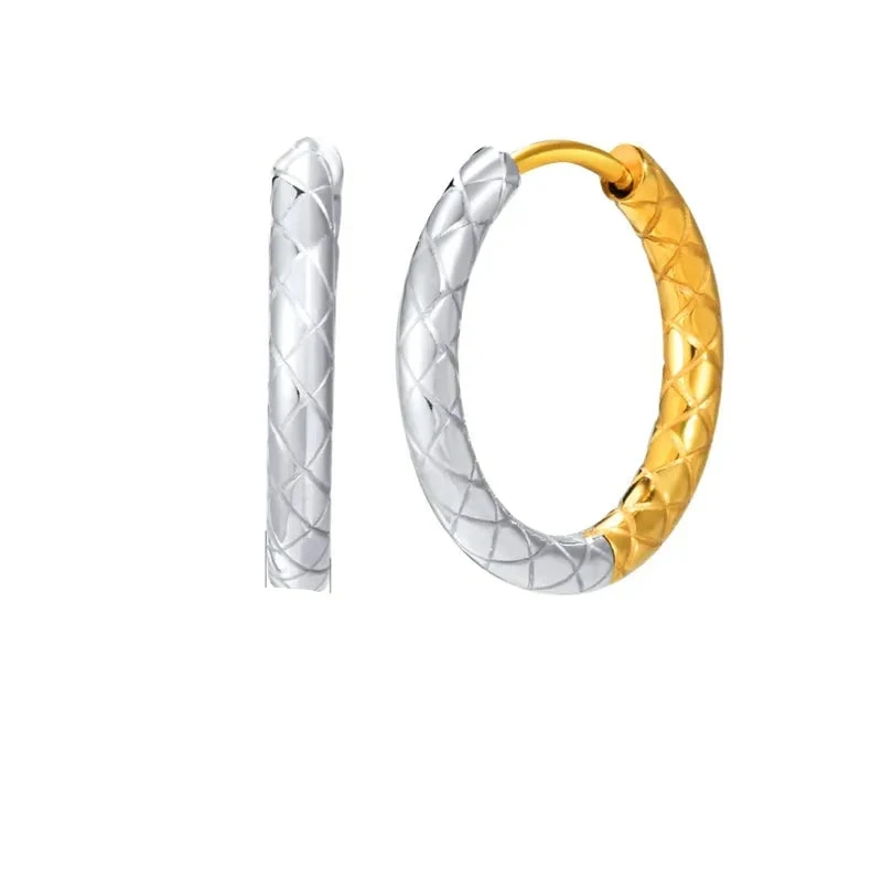 Σκουλαρίκια χρυσο και ατσάλι στρόγγυλα-EA273