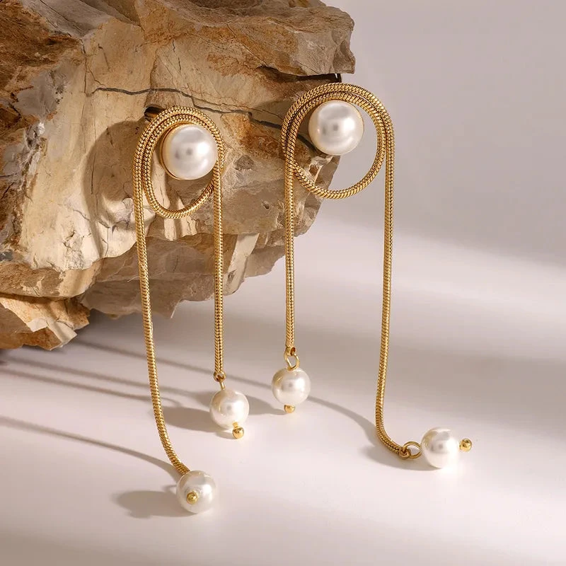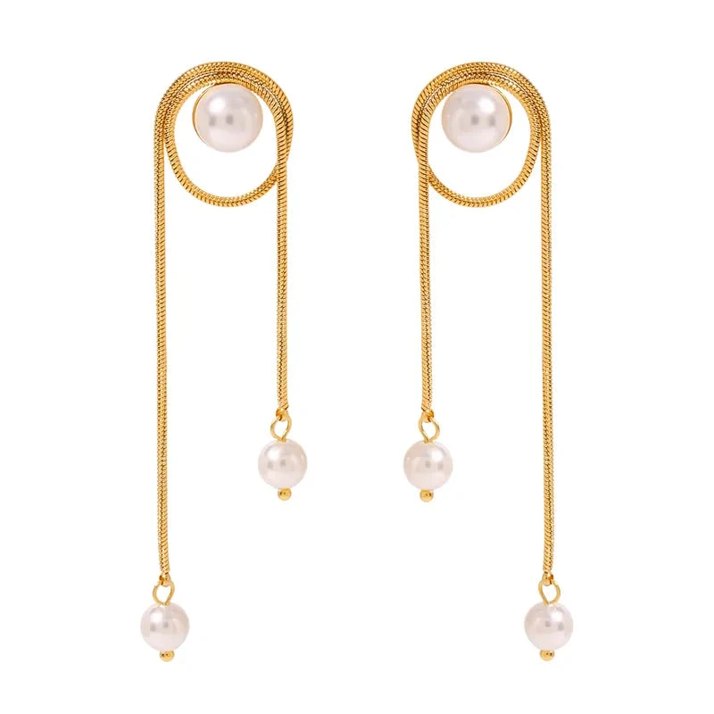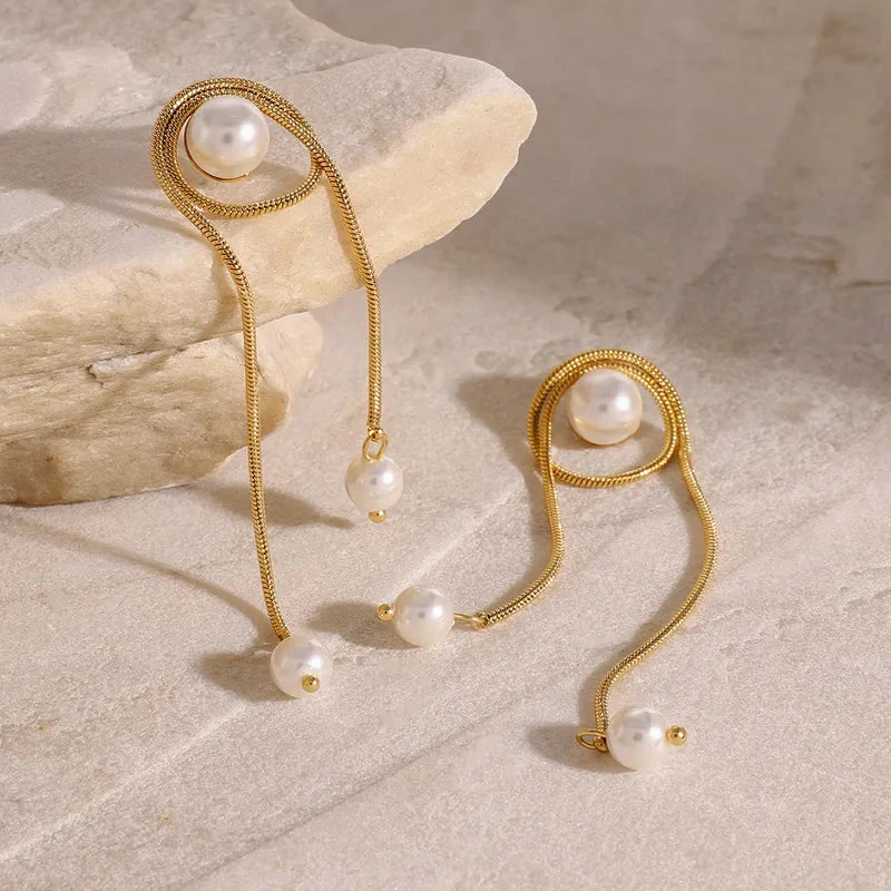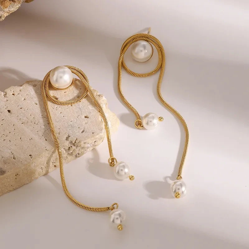 Σκουλαρίκια χρυσό ατσάλι αλυσίδα με πέρλα-EA518