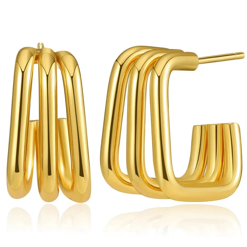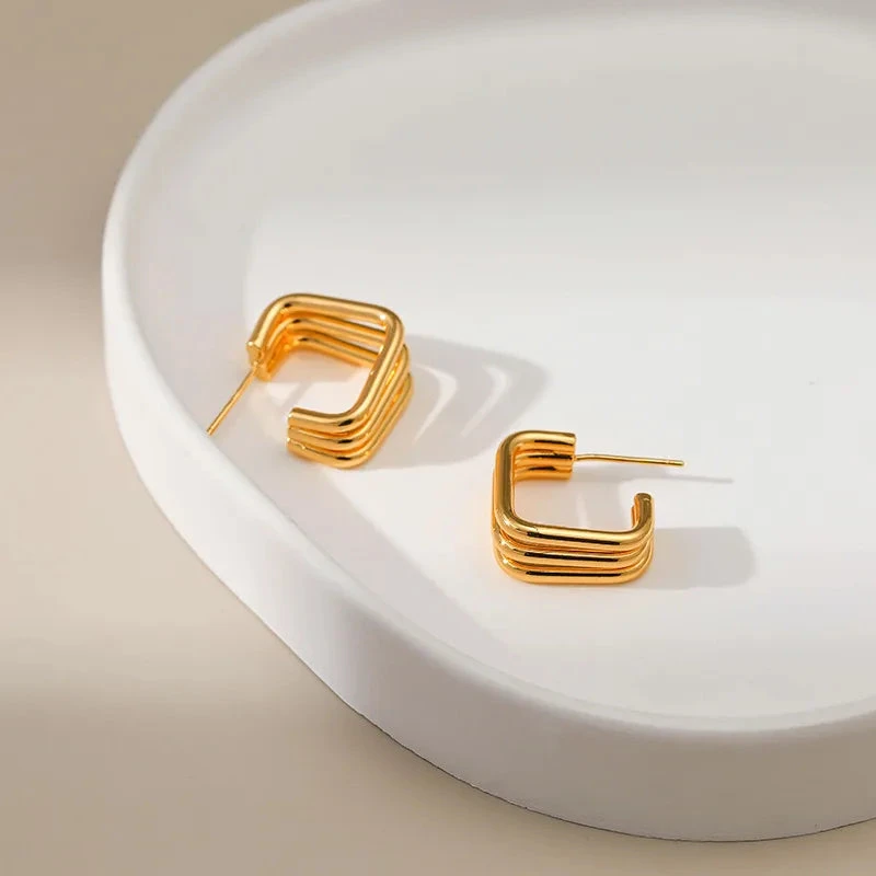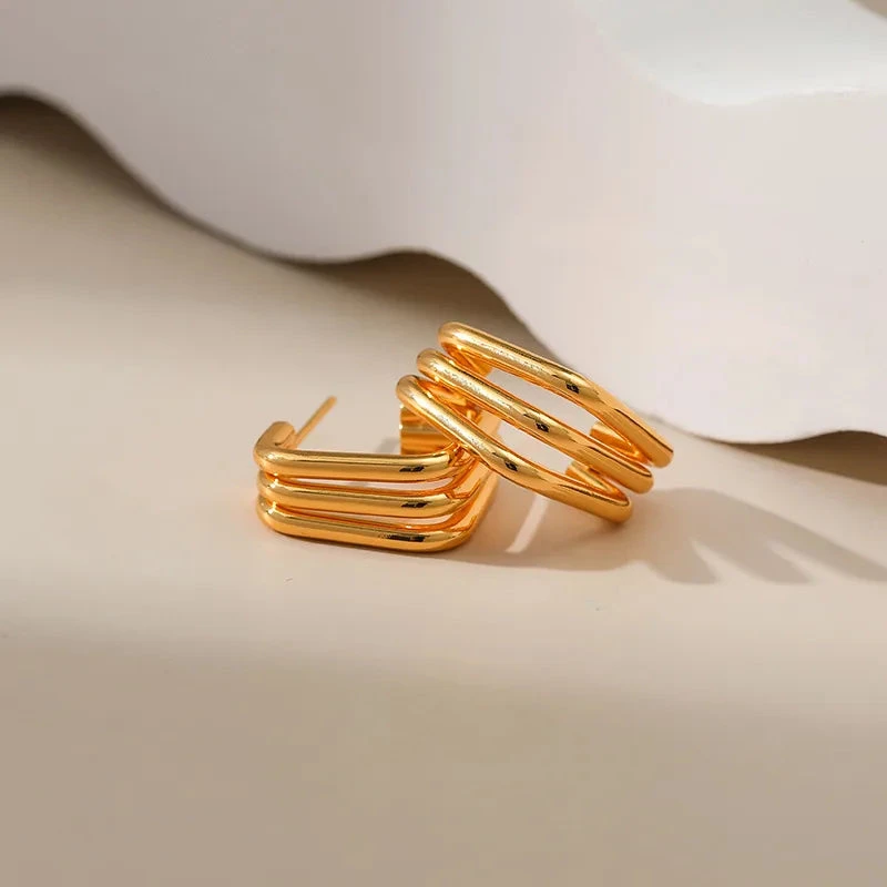 Σκουλαρίκια χρυσό κράμα τετραγωνισμένες γραμμές-EA042