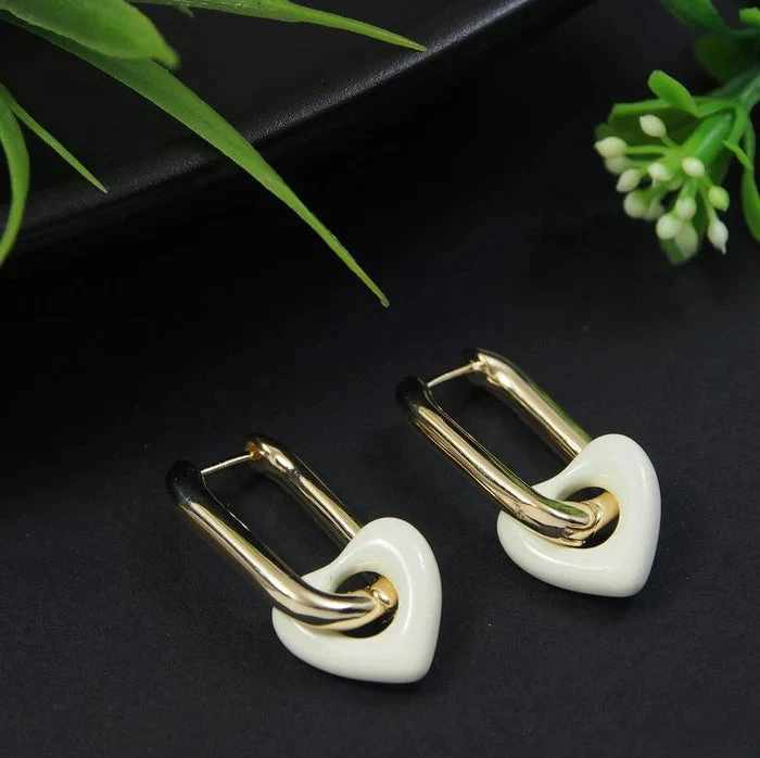 Σκουλαρίκια oval κρίκοι με λευκές καρδιές-EA462